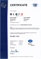 A quality management system that is subject to a permanent process of improvement monitors all the criteria. In order to lastingly ensure this elero completely identifies itself with the international standard ISO 9001.