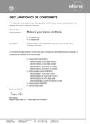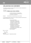 Déclaration CE de conformité pour les moteur tubulaire VariEco S-915 et VariEco M-915 avec 120V